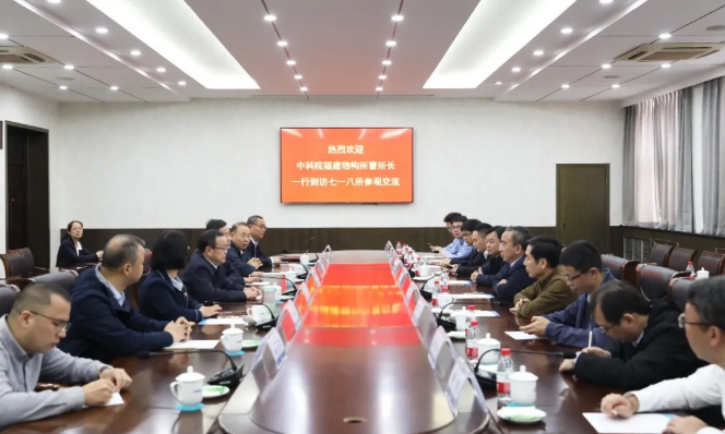 七一八所副所長祝維燕、科技委主任郭建增,中科院福建物構(gòu)所副所長林文雄,以及雙方相關(guān)部門負(fù)責(zé)人參加。