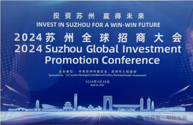 4月26日,明陽氫能受邀出席2024蘇州首屆全球招商大會。大會現場,明陽氫能與蘇州常熟虞山高新區簽訂《招商落戶協議書》。