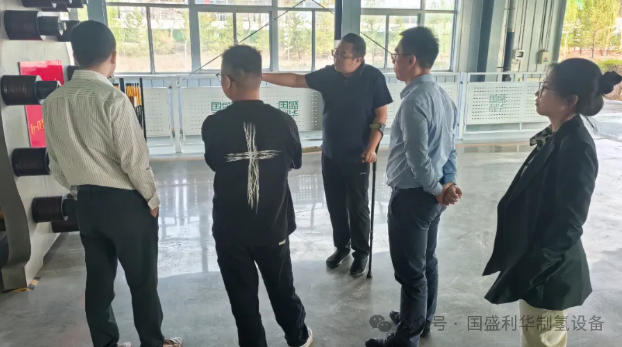 調研組來到國盛利華公司生產車間參觀設備生產線,了解產品參數和產能等情況,對國盛利華公司在氫能設備領域的更新換代,予以贊嘆。