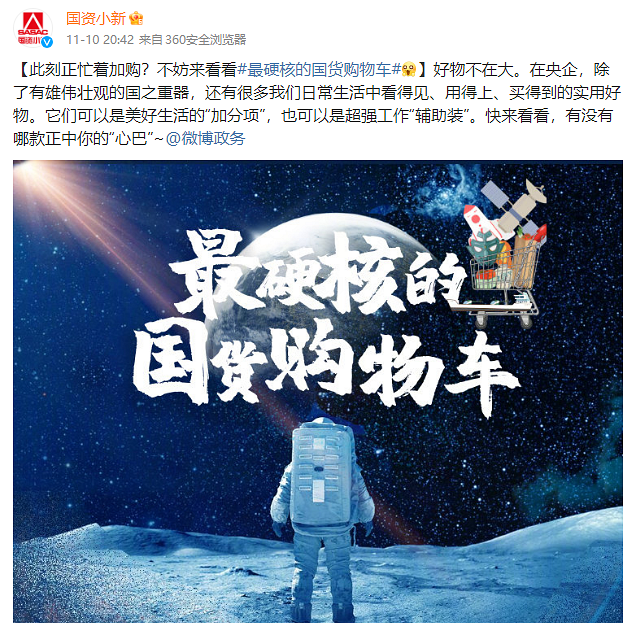 近日,國資委新聞中心官方微博“國資小新”發(fā)布了“最硬核的國貨購物車”系列微博,介紹了眾多由央企“國家隊(duì)”設(shè)計(jì)制造的各類“硬核物件”,個個都是大國重器,樣樣都是無價(jià)之寶。