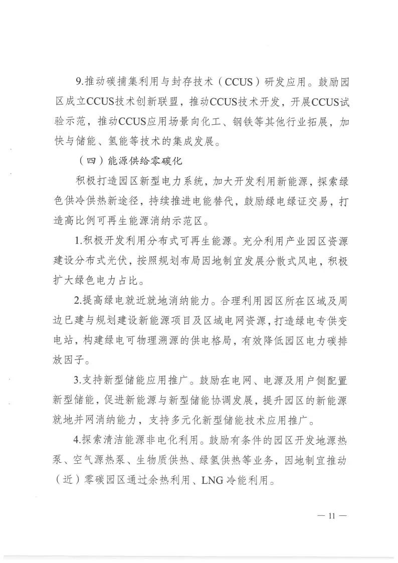 2、推動碳捕集利用與封存技術(CCUS)研發應用。推動CCUS應用場景向化工、鋼鐵等其他行業拓展,加快與儲能、氫能等技術的集成發展。探索清潔能源非電化利用。鼓勵有條件的園區開發地源熱泵、空氣源熱泵、生物質供熱、綠氫供熱等業務。