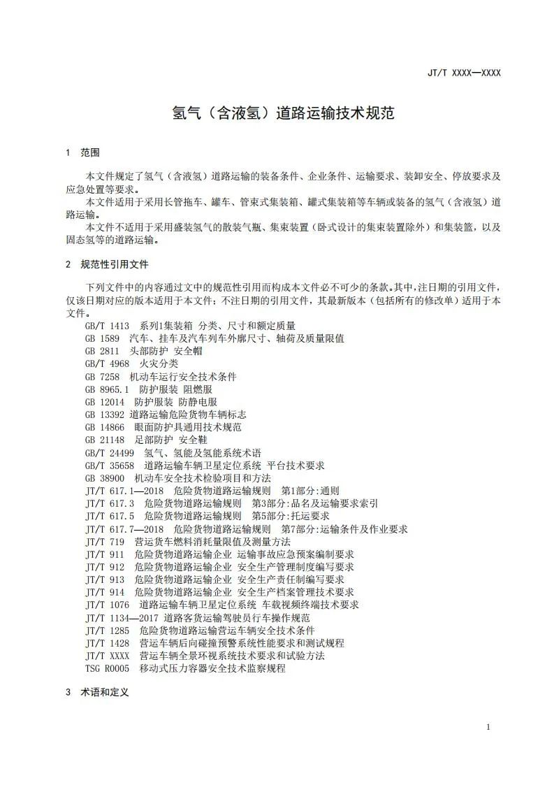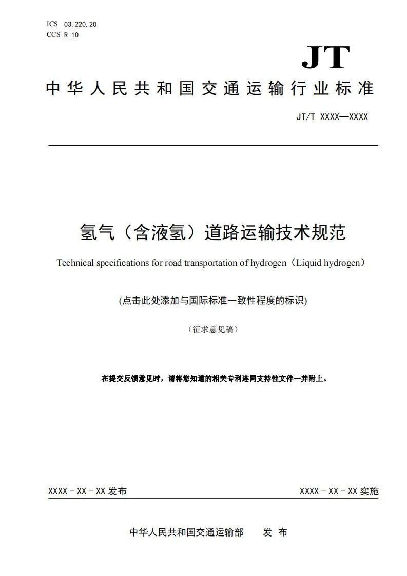 由交通運輸部公路科學研究所牽頭制定的行業標準《氫氣(含液氫)道路運輸技術規范》(計劃號:JT 2023-03)已完成征求意見稿,近日公開征求意見。