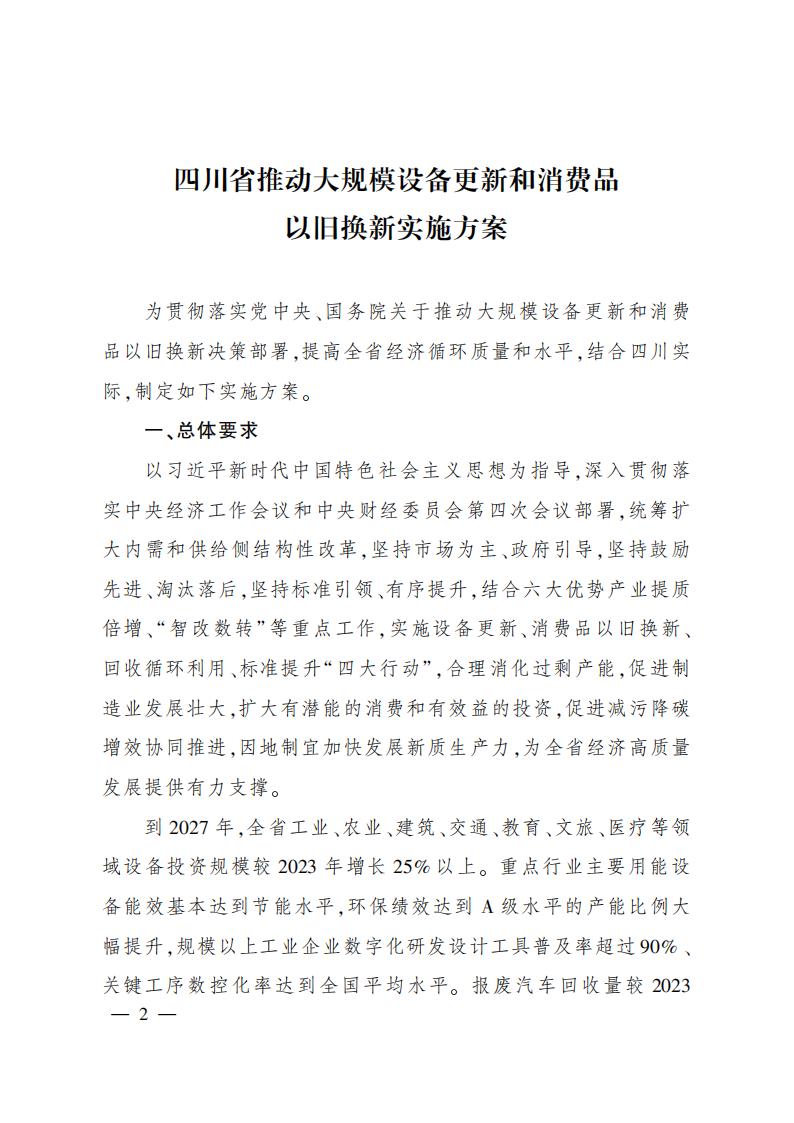 附件:四川省推動大規(guī)模設(shè)備更新和消費品以舊換新實施方案