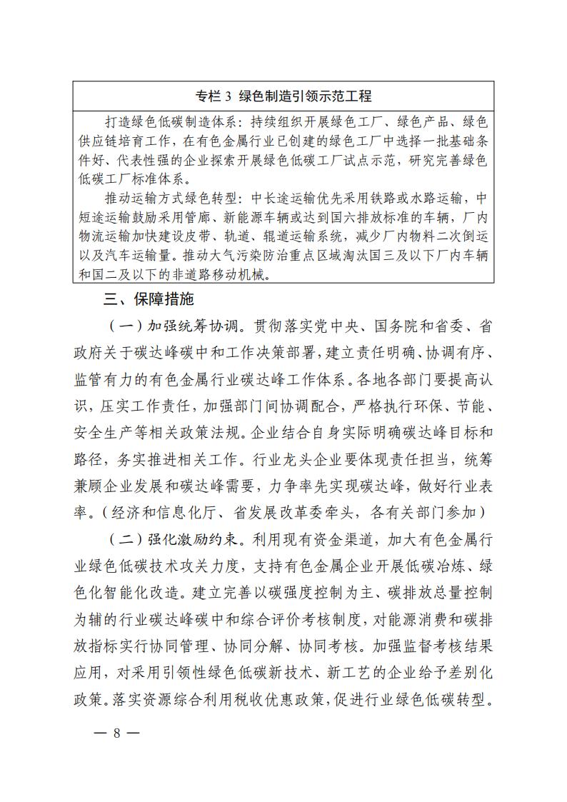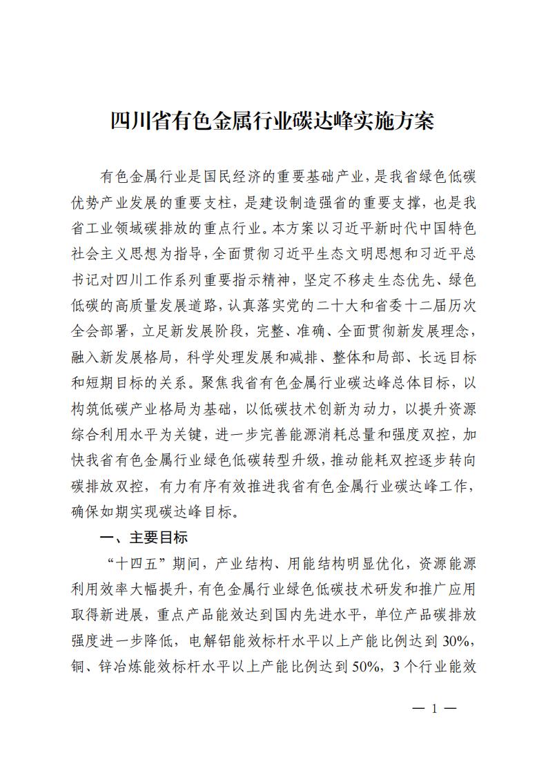 2024年5月10日,四川省經濟和信息化廳、四川省發展和改革委員會、四川省生態環境廳印發《四川省有色金屬行業碳達峰實施方案》。