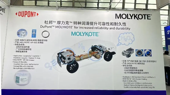 杜邦團(tuán)隊(duì)還將在展會(huì)上展示MOLYKOTE?特種潤(rùn)滑產(chǎn)品線及在氫能行業(yè)的應(yīng)用。MOLYKOTE? HP-300潤(rùn)滑脂的潤(rùn)滑能力及其對(duì)氫的惰性可以降低因制造或裝配不當(dāng)造成的泄漏風(fēng)險(xiǎn),是輸氫管道用閥門密封件的理想潤(rùn)滑劑。MOLYKOTE?減摩涂層具有高耐磨性和低摩擦系數(shù)特性,可應(yīng)用于燃料電池汽車上空氣壓縮機(jī)的箔片軸承,可以支持其實(shí)現(xiàn)極高的轉(zhuǎn)速,并且降低啟停循環(huán)期間的摩擦損失,從而提高FCV空氣壓縮機(jī)的可靠性和耐用性。