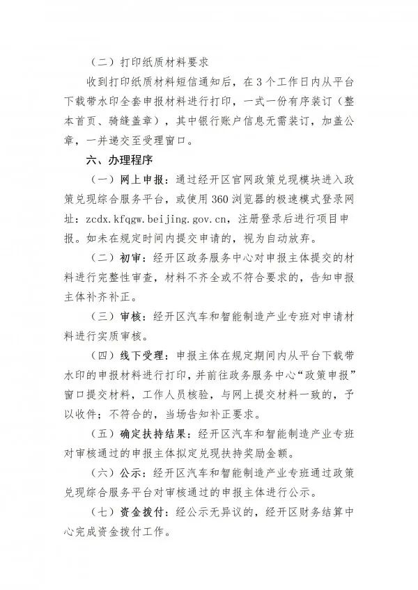 自2024年6月6日至2023年6月20日期間通過(guò)經(jīng)開(kāi)區(qū)官網(wǎng)政策兌現(xiàn)模塊進(jìn)入政策兌現(xiàn)綜合服務(wù)平臺(tái),或使用360瀏覽器的極速模式登錄網(wǎng)址:zcdx.kfqgw.beijing.gov.cn,注冊(cè)登錄后進(jìn)行項(xiàng)目申報(bào)。如未在規(guī)定時(shí)間內(nèi)提交申請(qǐng)的,視為自動(dòng)放棄。