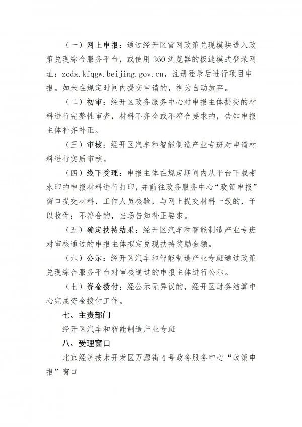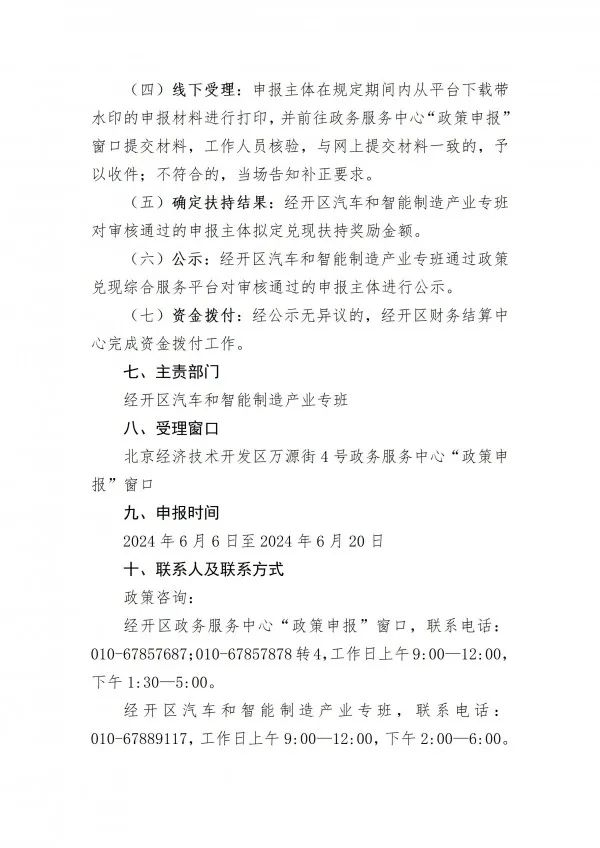 經(jīng)開(kāi)區(qū)汽車和智能制造產(chǎn)業(yè)專班,聯(lián)系電話:010-67889117,工作日上午9:00—12:00,下午2:00—6:00。