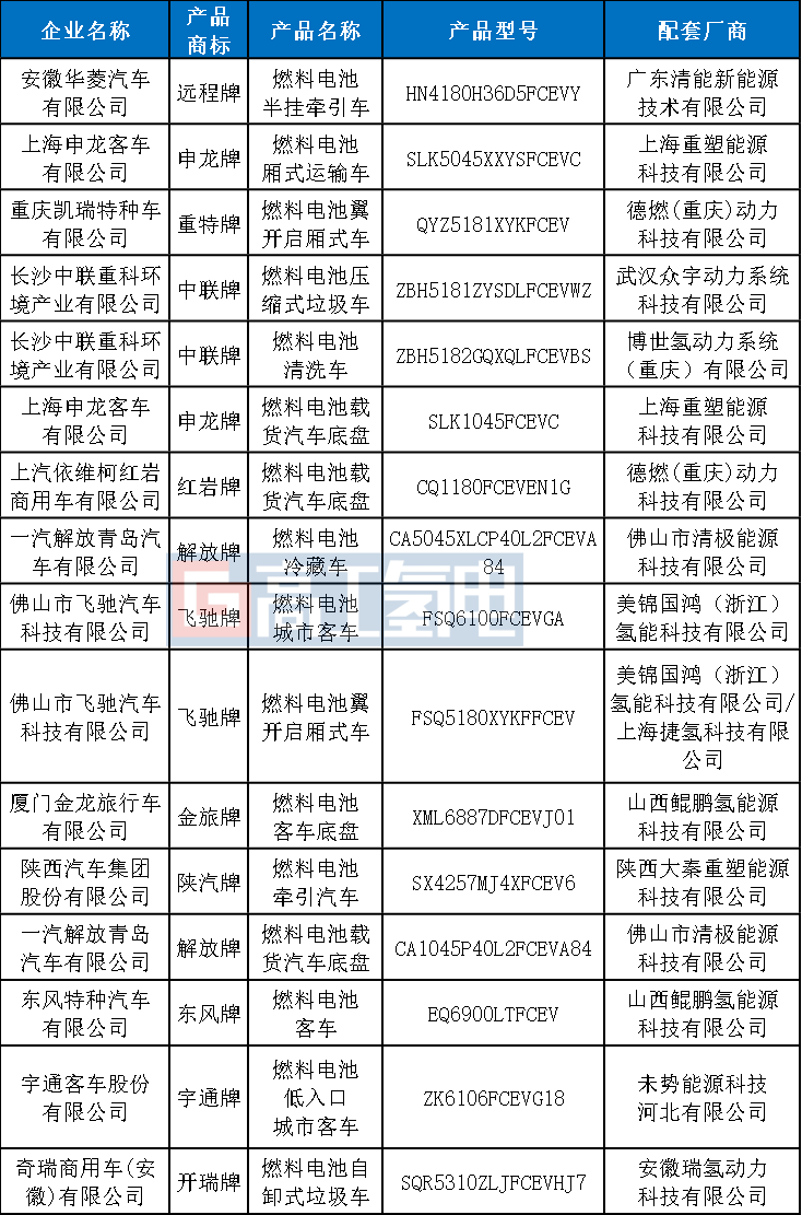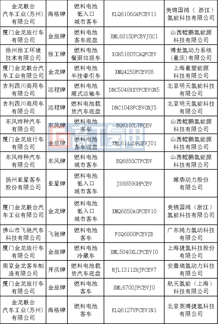 值得注意的是,本批次上榜車型燃料電池客車和燃料電池客車底盤共14款,接近本次推薦燃料電池汽車產品總數的一半,可見燃料電池汽車在客運領域的應用進展迅猛。