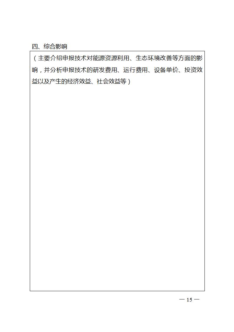 (1)申報技術應具備顯著的節(jié)能降碳和環(huán)境保護、資源高效利用效果,能夠有效提升相關行業(yè)的綠色化水平,在行業(yè)內具有先進性、引領性和示范性,具有良好的推廣價值和應用前景。