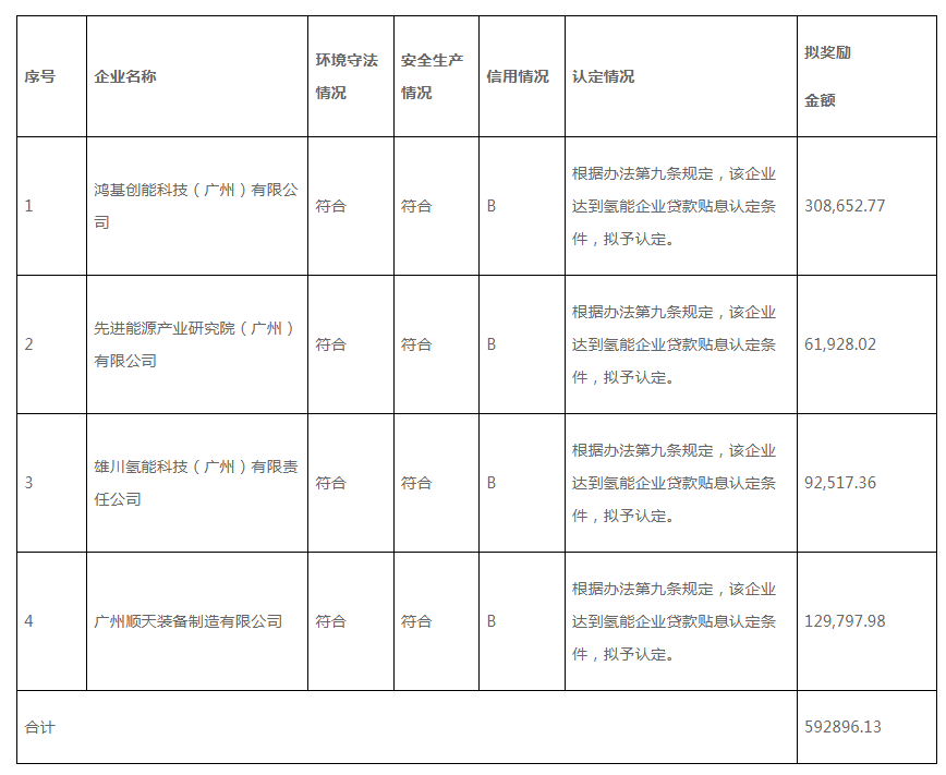 根據(jù)《廣州市黃埔區(qū) 廣州開發(fā)區(qū)促進(jìn)氫能能產(chǎn)業(yè)發(fā)展辦法》(穗埔府規(guī)〔2021〕7號(hào),以下簡(jiǎn)稱“辦法”)和《廣州市黃埔區(qū) 廣州開發(fā)區(qū)促進(jìn)氫能產(chǎn)業(yè)發(fā)展辦法實(shí)施細(xì)則》(穗埔發(fā)改規(guī)字〔2021〕2號(hào),以下簡(jiǎn)稱“實(shí)施細(xì)則”)的規(guī)定,現(xiàn)對(duì)區(qū)促進(jìn)氫能產(chǎn)業(yè)發(fā)展辦法2024年第一批擬扶持項(xiàng)目的扶持情況進(jìn)行公示,公示內(nèi)容詳見附表。