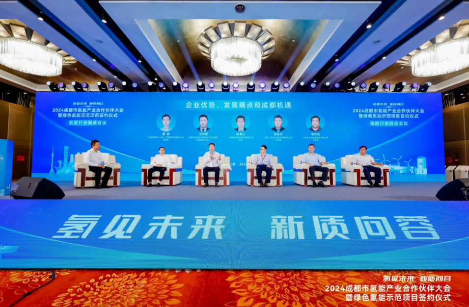 圓桌對(duì)話環(huán)節(jié),中石化新星北京公司作為鏈主企業(yè)代表,圍繞氫能產(chǎn)業(yè)布局、技術(shù)創(chuàng)新、行業(yè)痛點(diǎn)及在蓉發(fā)展構(gòu)想等方面發(fā)表主旨演講,并與部分企業(yè)嘉賓就氫能產(chǎn)業(yè)發(fā)展進(jìn)行了熱烈的交流討論。