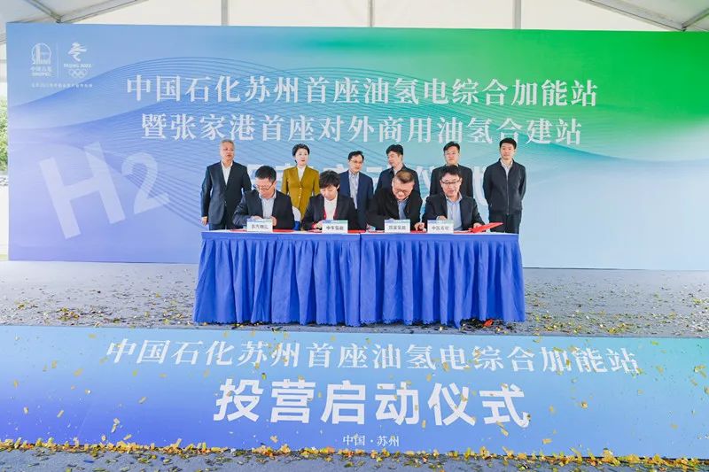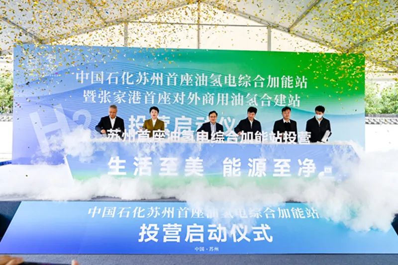 11月18日,中國石化江蘇蘇州首座對外商用油氫電綜合加能站投營儀式在張家港朝陽綜合加能站舉行。