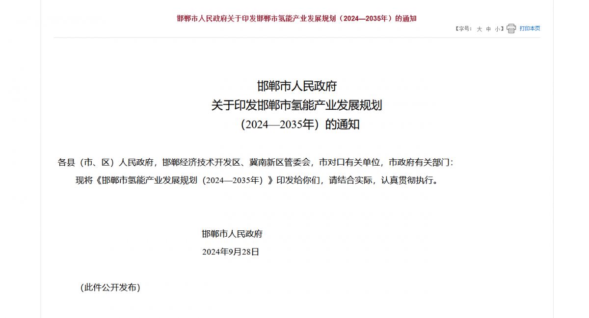 邯鄲市氫能產業發展規劃