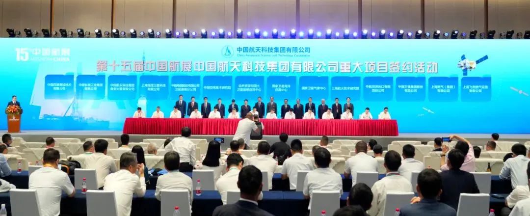 11月12日上午,第十五屆中國國際航空航天博覽會在廣東珠海開幕。中國航天科技集團有限公司舉行重大項目簽約儀式,與國家相關部門、地方政府、行業用戶、企業代表等簽署了70余項合作協議及合作意向,累計簽約金額近600億元,再創新高。