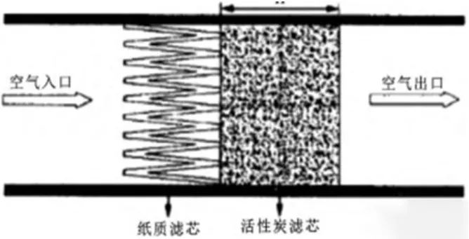 空濾器是降低進氣噪聲最有效的手段之一,由于空氣中的顆粒物會堵塞質子交換膜,雜質氣體(SO2、NH3、NOx 等)會造成催化劑中毒,氫燃料電池汽車的空濾器與傳統燃油汽車的空濾器不同,包含紙質濾芯以及活性炭濾芯兩層過濾裝置,如圖6所示。