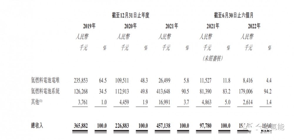 從報告來看,國鴻氫能營收實現了快速增長,2021年達到了4.57億,其柔性石墨雙極板、電堆及系統產能利用率在報告期內快速提升。報告期內,國鴻氫能營收情況如所示,2019年-2022年6月30日,營收分別為3.66億、2.27億、4.57億和1.90億。其中2020年營收較2019年下滑了近38%,報告指出,營收下滑的主要原因是下游訂單因客戶更愿意于有關支持性政策更新后下達訂單而延遲以及COVID-19疫情的影響。