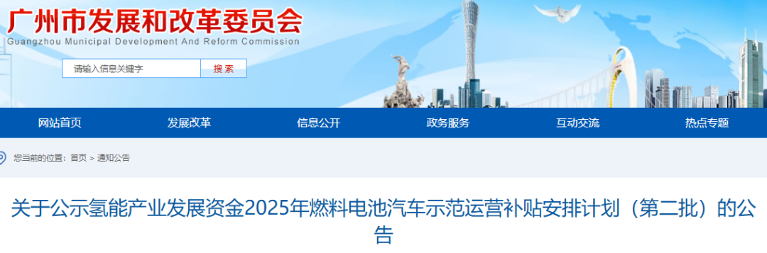 近日,廣州市發(fā)展和改革委員會(huì)發(fā)布《關(guān)于公示氫能產(chǎn)業(yè)發(fā)展資金2025年燃料電池汽車示范運(yùn)營(yíng)補(bǔ)貼安排計(jì)劃(第二批)的公告》。
