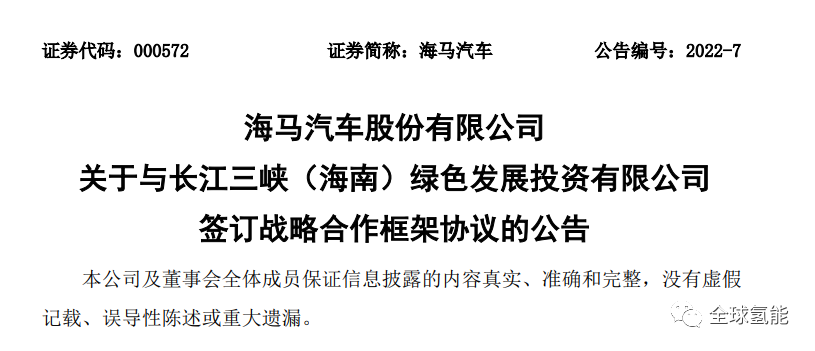 3月1日午間,海馬汽車發布公告,宣布海馬汽車股份有限公司(以下簡稱“海馬汽車”)與長江三峽(海南)綠色發展投資有限公司(以下簡稱“三峽海南投資”)在海口簽署了《“碳達峰、碳中和”戰略合作框架協議》。