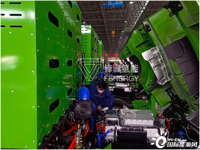 此次已經完成供貨的64臺氫能重卡,采用49噸氫燃料電池半掛式牽引車,搭載鋒源氫能FY06系列氫燃料電池電堆。其中,鋒源氫能的電堆峰值功率可達150kW,功率密度4kW/L,設計壽命20000小時,經過嚴格的設計開發流程,性能穩定,廣泛用于氫能重卡、物流車等車輛。