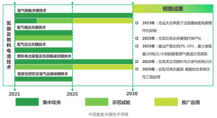至 2030 年,中國將形成較為完備的氫能產業技術創新體系、清潔能源制氫及供應體系,產業布局合理有序,可再生能源制氫廣泛應用。