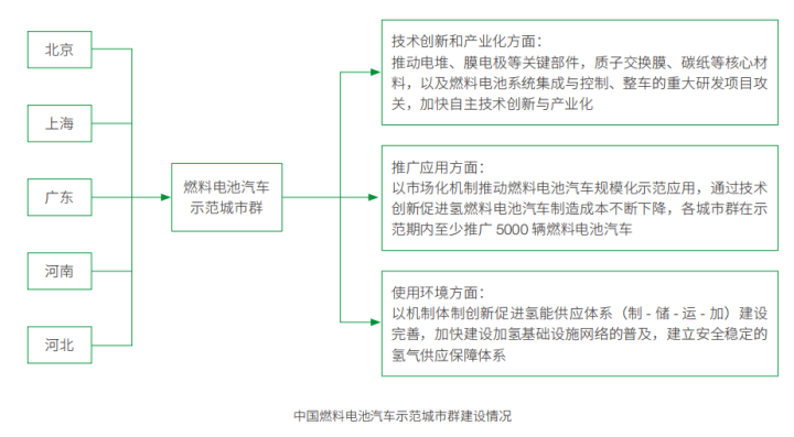 2021年,北京、上海、廣東、河南、河北正式成為中國首批燃料電池汽車示范城市群,以燃料電池汽車示范應用為牽引,持續加大氫能產業支持力度。