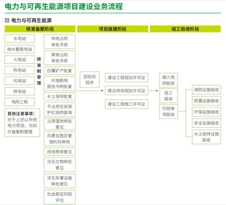 電力與可再生能源項目建設業務流程包括: