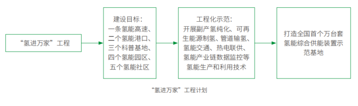 “氫進萬家”工程:為推動氫能創新鏈與產業鏈融合發展,加快氫能在交通運輸、工業和家庭用能等終端領域應用,引導氫能進入居民能源消費終端,中國實施“氫進萬家”工程,探索氫能在多種場景下的高效、安全利用新模式。