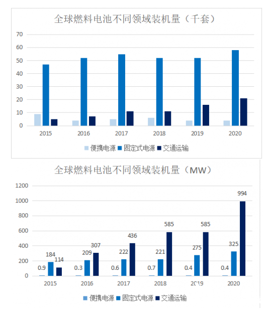 自2015年起,全球燃料電池不同應(yīng)用領(lǐng)域裝機(jī)量總體救呈上升趨勢(shì)。其中,交通運(yùn)輸領(lǐng)域裝機(jī)量上升顯著,尤其是在汽車領(lǐng)域。截至2020年底,全球氫燃料電池汽車保有量為32535輛,同比增長(zhǎng)38%。燃料電池汽車發(fā)展受到了廣泛關(guān)注。2016年起,在政策的支持下,我國(guó)氫燃料電池汽車產(chǎn)量逐年提升;2020年受疫情影響,行業(yè)產(chǎn)量下滑至1199輛。截止2020年底,我國(guó)氫燃料電池汽車保有量為7352輛,我國(guó)氫燃料電池汽車正式進(jìn)入商業(yè)化初期。