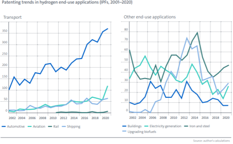 值得一提的是,IEA的報告與中國國內關于氫能專利的研究實踐有一定出入:根據國內研究,中國的氫能專利在近年來發展蓬勃;但根據IEA報告,中國對于氫專利貢獻較少。