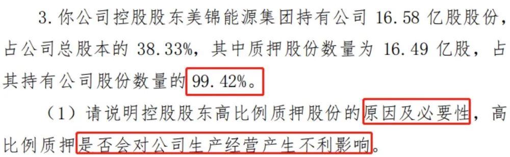 而此次,深交所要公司說明控股股東高比例質押股份的原因及必要性,高比例質押是否會對公司生產經營產生不利影響;說明控股股東未來半年內和一年內分別到期的質押股份累計數量、占其所持股份比例、占公司總股本比例、對應融資余額,并結合控股股東主要財務數據、可利用融資渠道,說明資金償付能力及具體安排,是否存在平倉風險;核實并說明控股股東是否存在通過非經營性資金占用、違規擔保、關聯交易等侵害上市公司利益的情況。