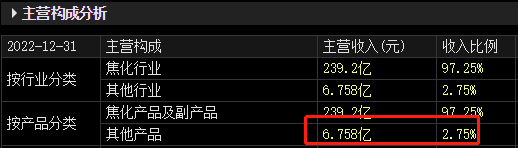 美錦能源主營業務是焦化廠、煤礦、煤層氣的開發、投資,批發零售煤炭、金屬材料、建材、日用雜平、勞保用品,煤炭、焦炭、煤矸石、金屬鎂、鐵礦粉、生鐵的加工與銷售等,并于近年開始切入氫能源領域。但從2022年年報來看,氫能源相關的營業收入還只是數億級別,占總營收比例不到3%,超過97%的收入依然來自焦化產品及副產品。